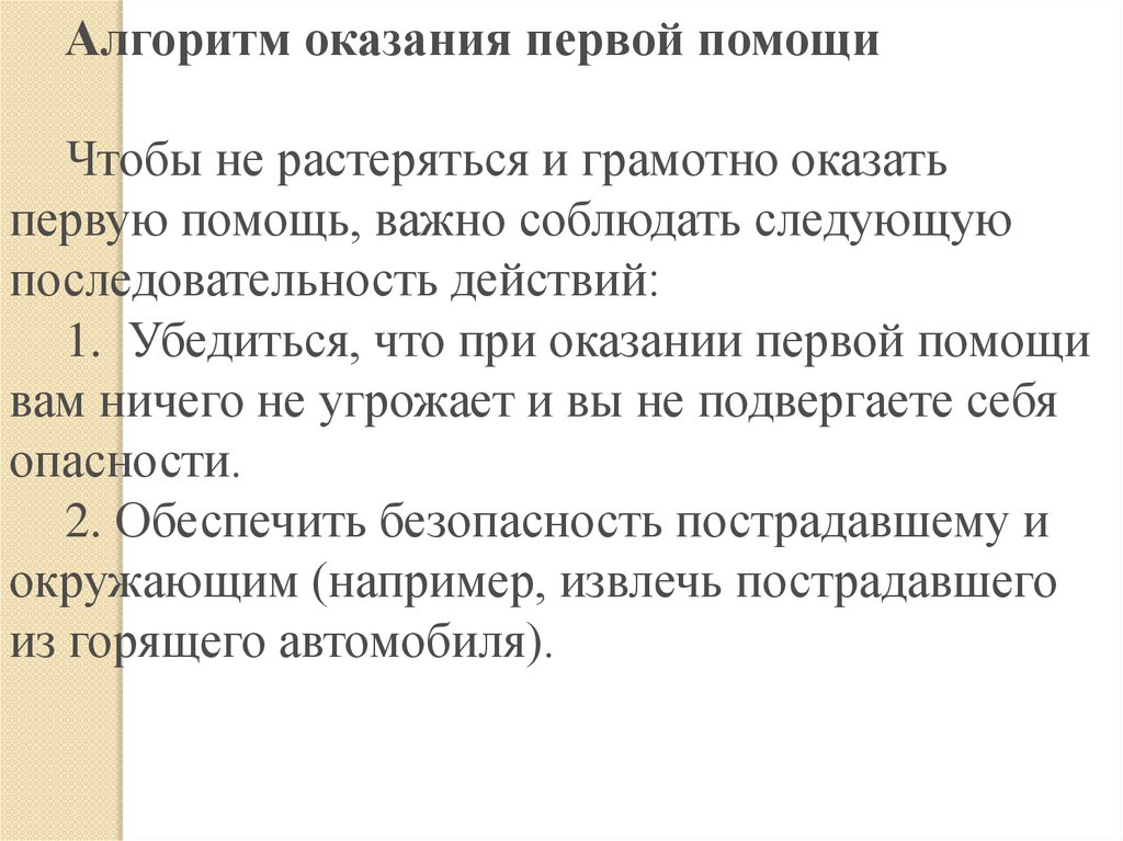 Алгоритм оказания первой помощиЧтобы не растеряться и грамотно оказать