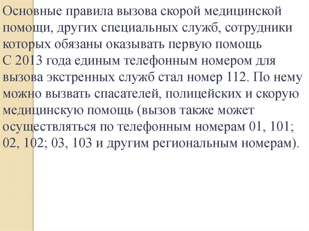 Основные правила вызова скорой медицинскойпомощи, других специальных служб, сотрудники
