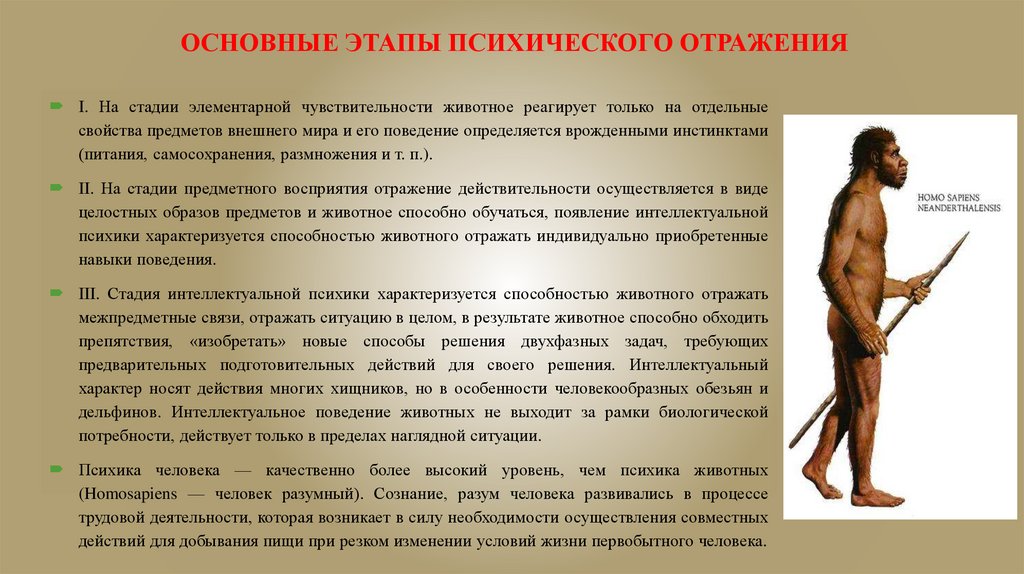 ОСНОВНЫЕ ЭТАПЫ ПСИХИЧЕСКОГО ОТРАЖЕНИЯI. На стадии элементарной чувствительности животное реагирует только на отдельные