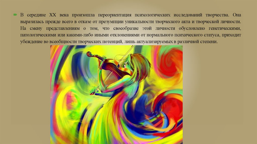 является одним из важнейших для понимания творческого процесса и творческой личности.
