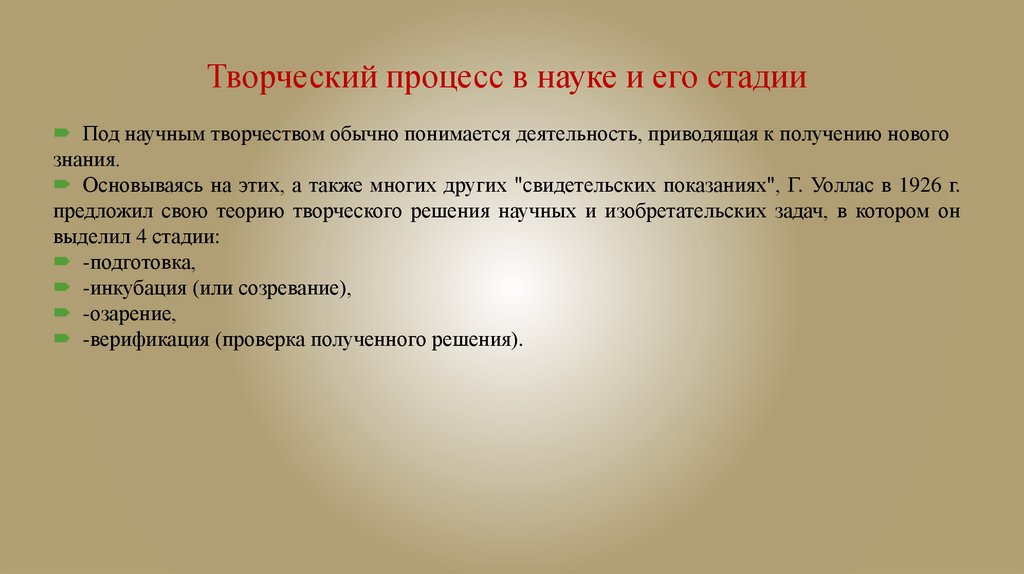 Творческий процесс в науке и его стадииПод научным творчеством обычно понимается деятельность, приводящая к получению нового