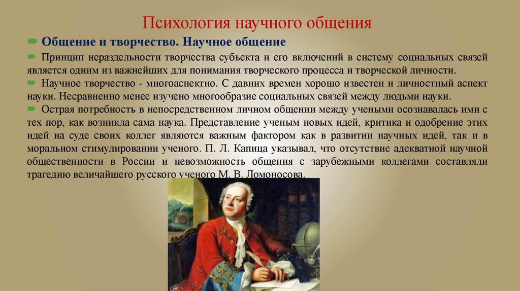 Общение является не только необходимым, но качественно своеобразным фактором научнойдеятельности, имеющим особое строение и собственные механизмы, неотделимые от
