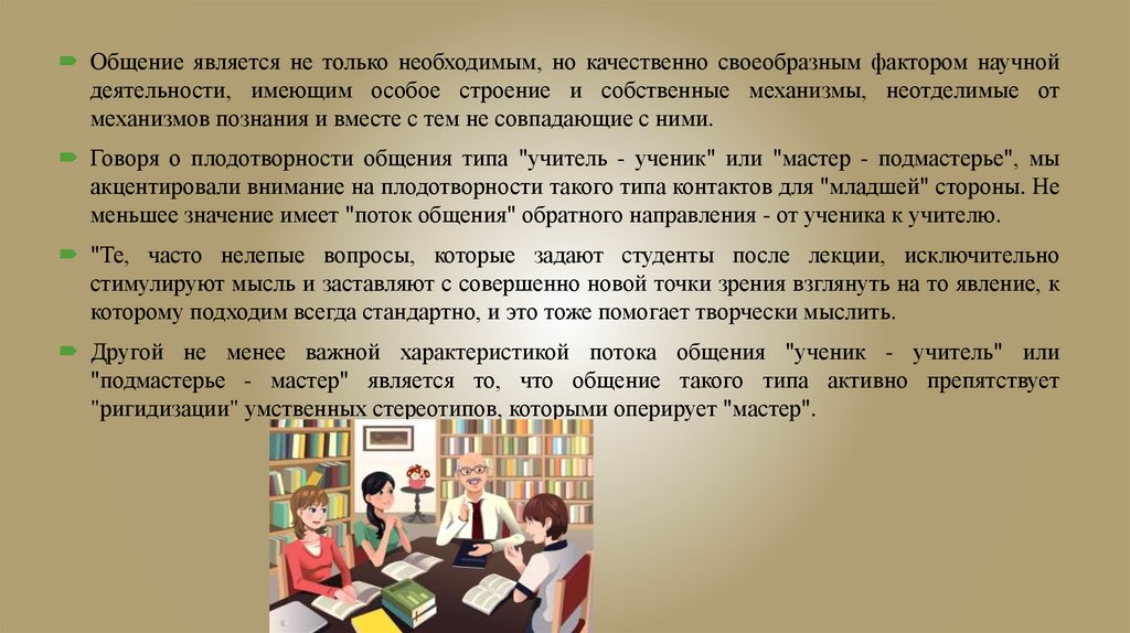"подмастерье - мастер" является то, что общение такого типа активно препятствует