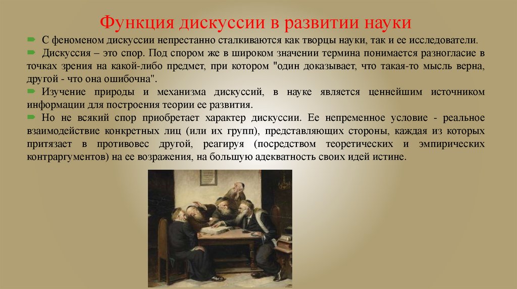 Изучение природы и механизма дискуссий, в науке является ценнейшим источником