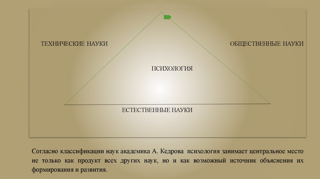 Согласно классификации наук академика А. Кедрова психология занимает центральное место
