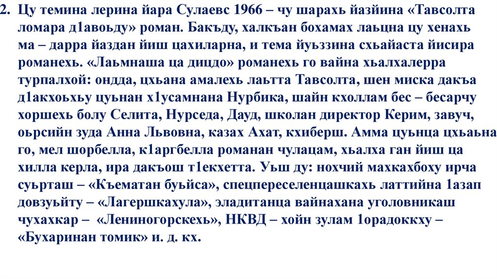 2. Роман «Лаьмнаша ца дицдо» йеша, чулацам хаьа.