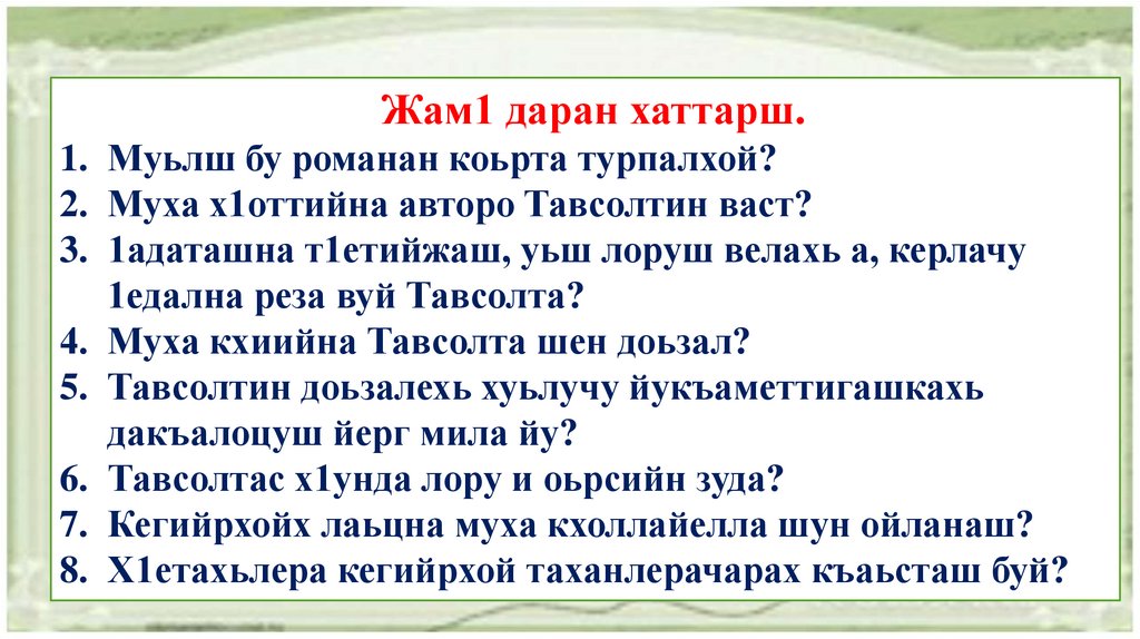 6. Тавсолтас х1унда лору и оьрсийн зуда?