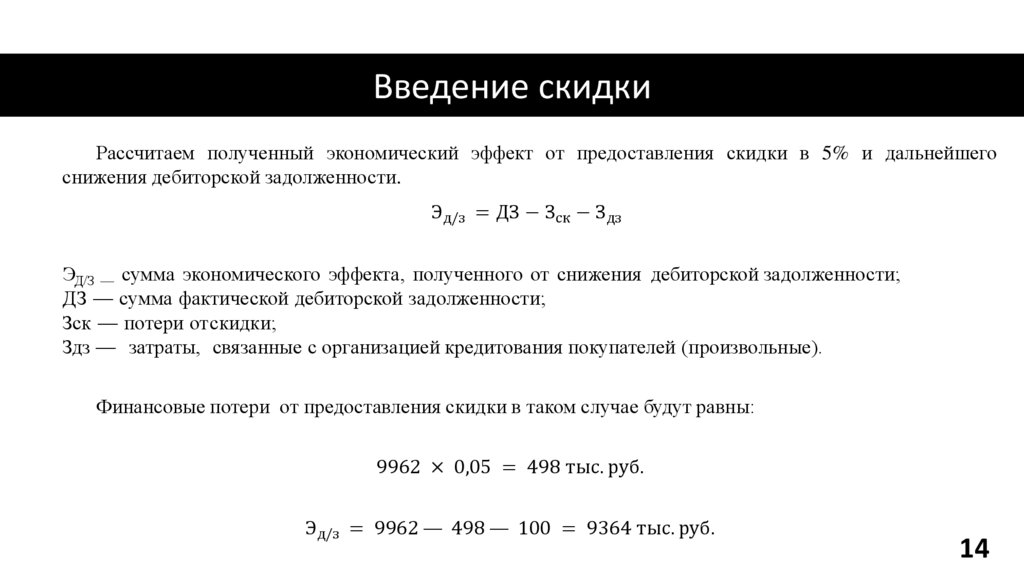 ЭД/З — сумма экономического эффекта, полученного от снижения дебиторской задолженности;