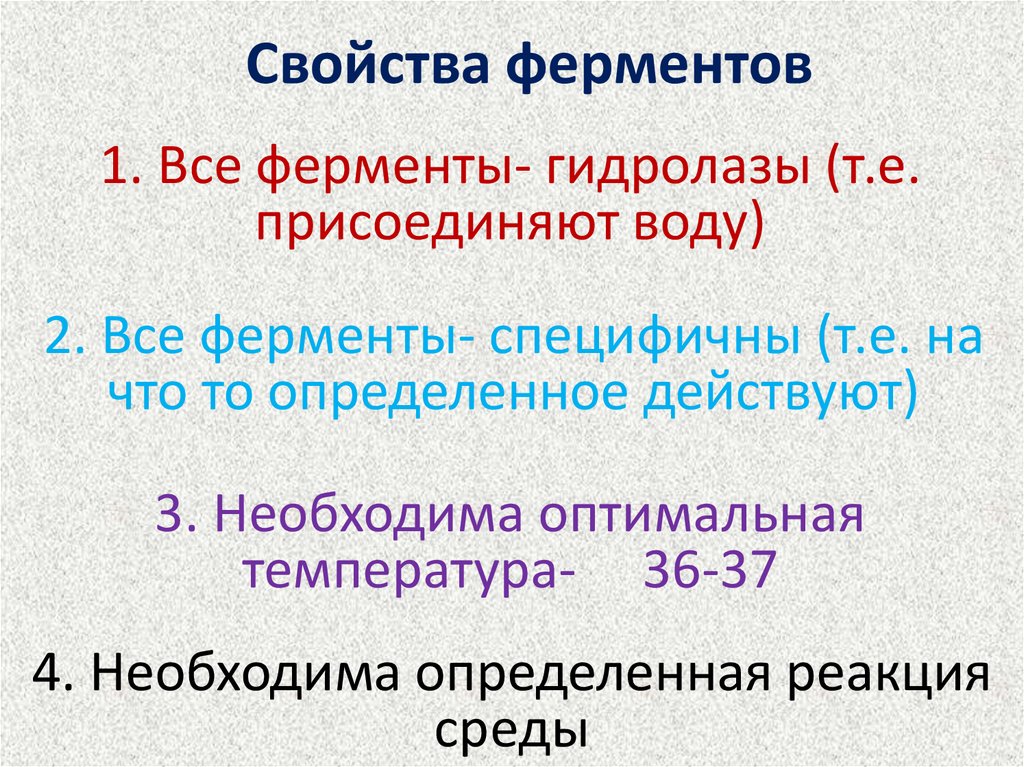 Свойства ферментов1. Все ферменты- гидролазы (т.е.