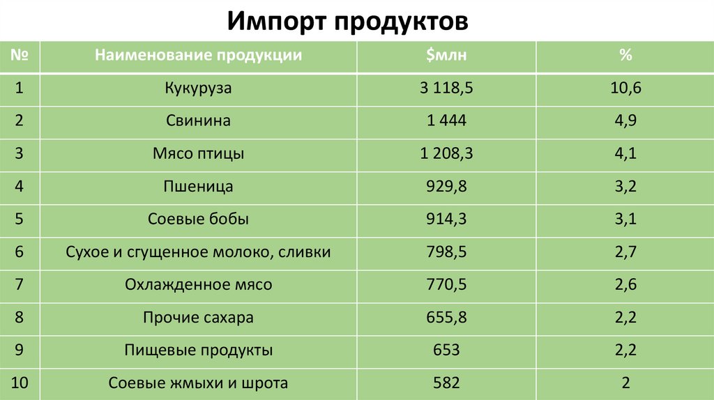 Импорт продуктов№
