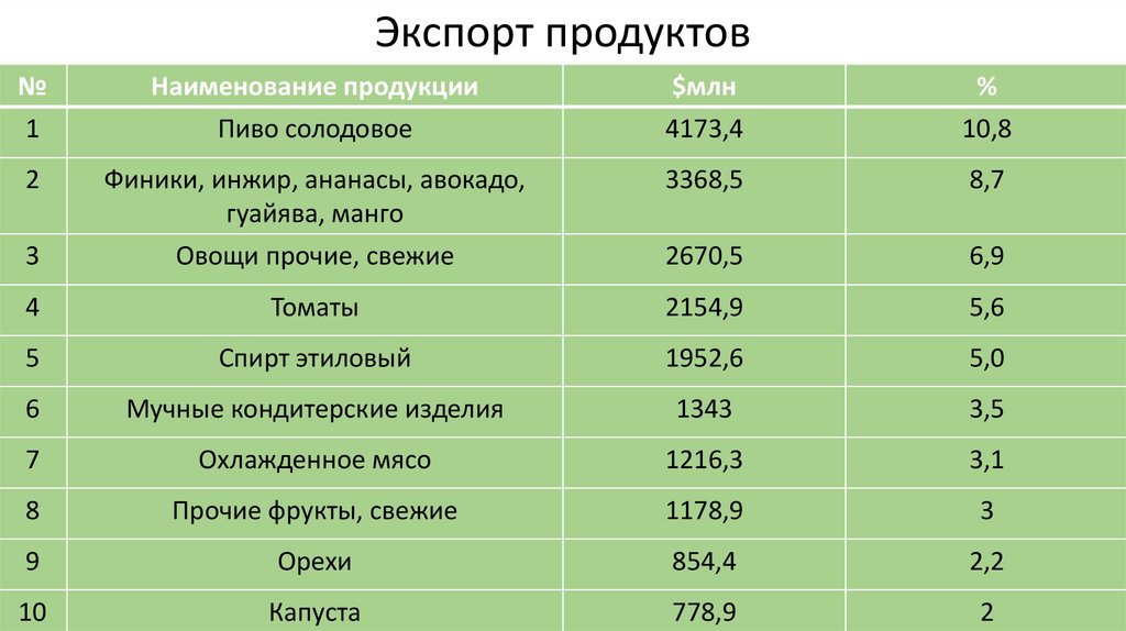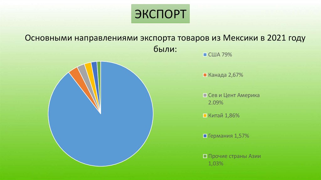 ЭКСПОРТОсновными направлениями экспорта товаров из Мексики в 2021 году