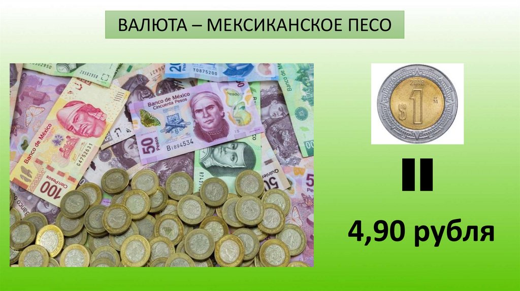 ВАЛЮТА – МЕКСИКАНСКОЕ ПЕСО4,90 рубля
