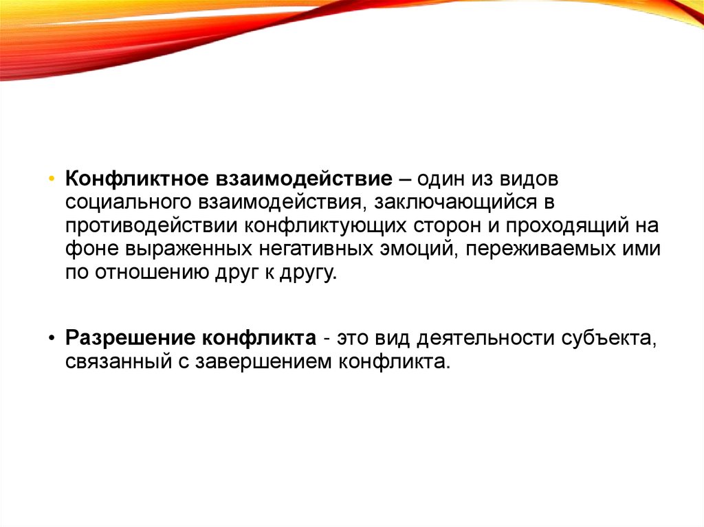 • Конфликтное взаимодействие – один из видовсоциального взаимодействия, заключающийся в