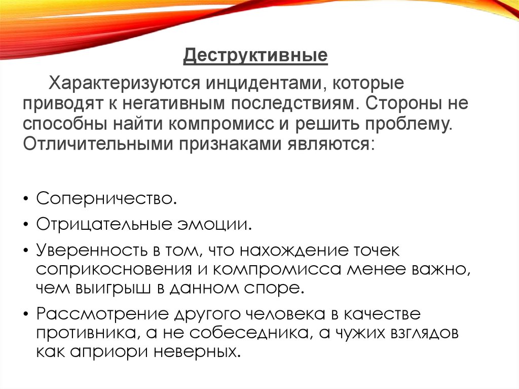 КонструктивныеХарактеризуются инцидентами, которые приводят