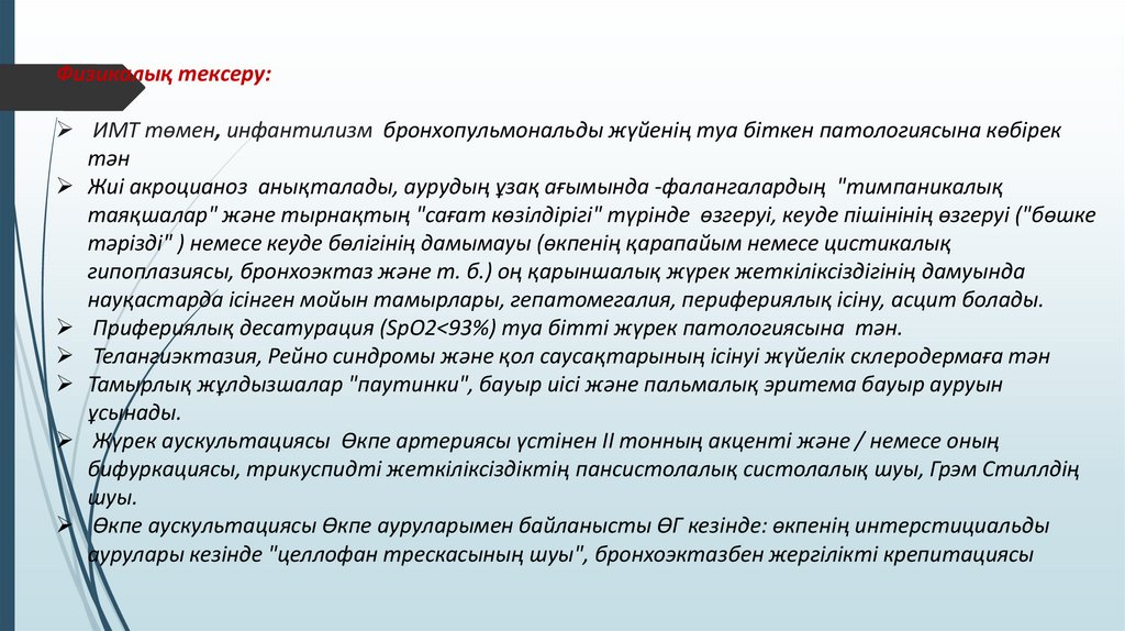 2.4 Туа біткен/жүре пайда болған кардиоваскулярлық жағдай, посткапиллярлық ӨГ дамуына