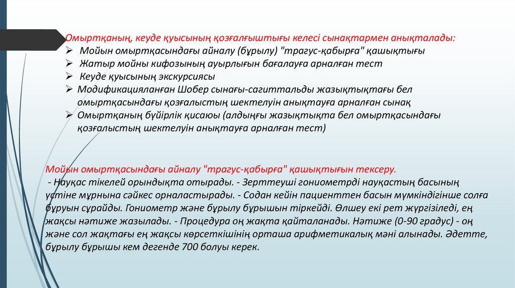 мақсатында клиникалық көрсеткіштер (омыртқаның белгілі бір