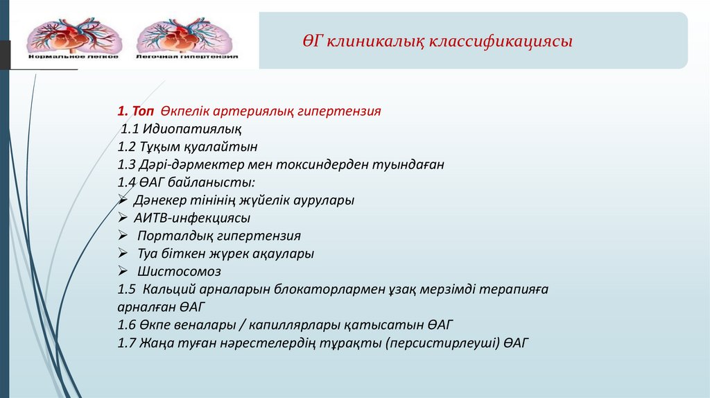 ӨГ клиникалық классификациясы1. Топ Өкпелік артериялық гипертензия