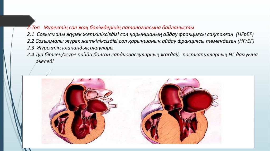 2-Топ Жүректің сол жақ бөлімдерінің патологиясына байланысты2.1 Созылмалы жүрек жеткіліксіздігі сол қарыншаның айдау фракциясы сақталған (HFpEF)