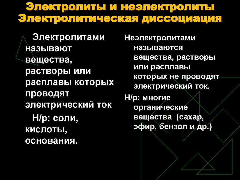 2. Электролиты и неэлектролиты Электролитическая диссоциация