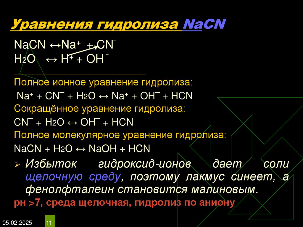 NaCN ↔Na+ + CN‾Н2О ↔ H+ + OH ‾
