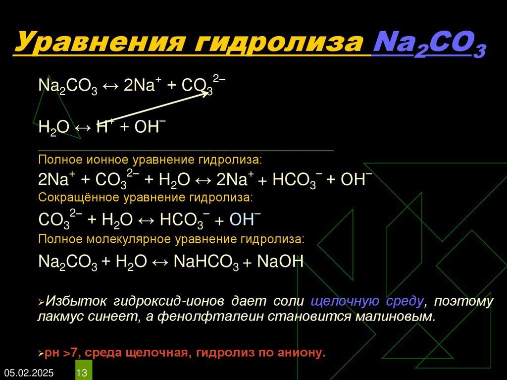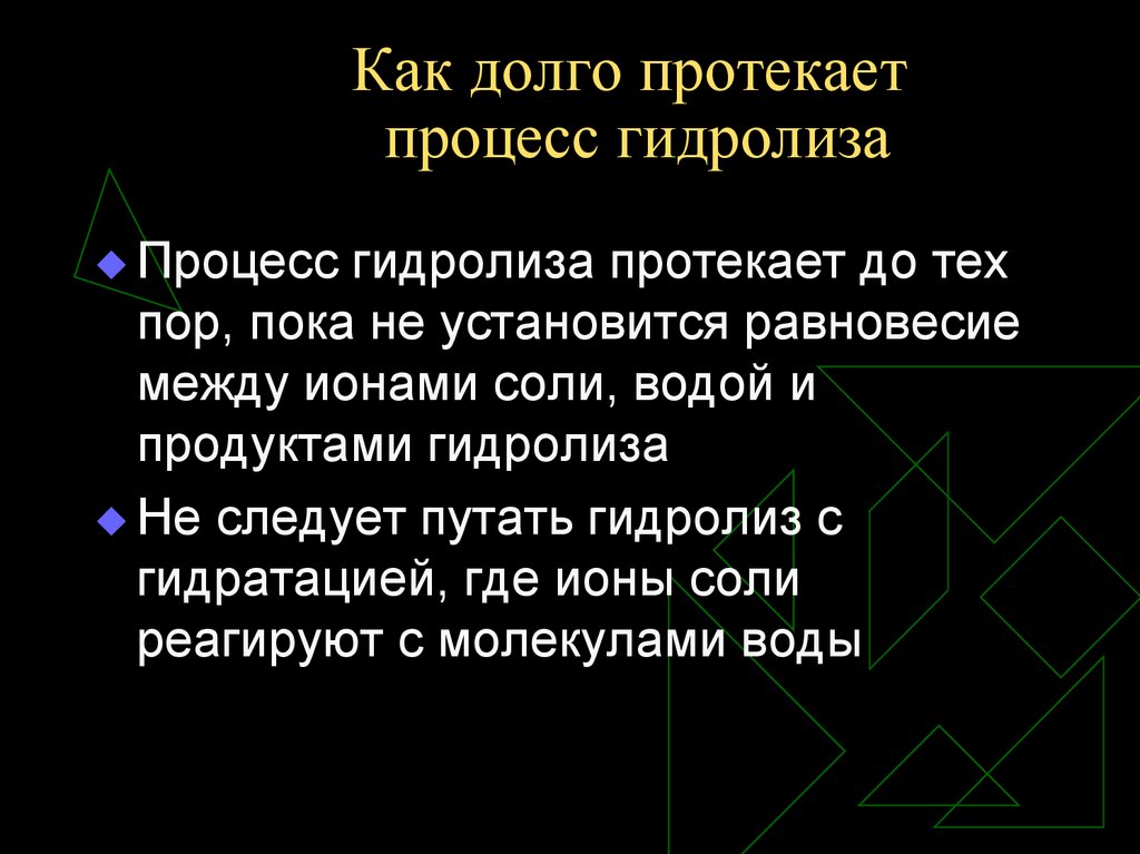 Процесс гидролиза протекает до техпор, пока не установится равновесие