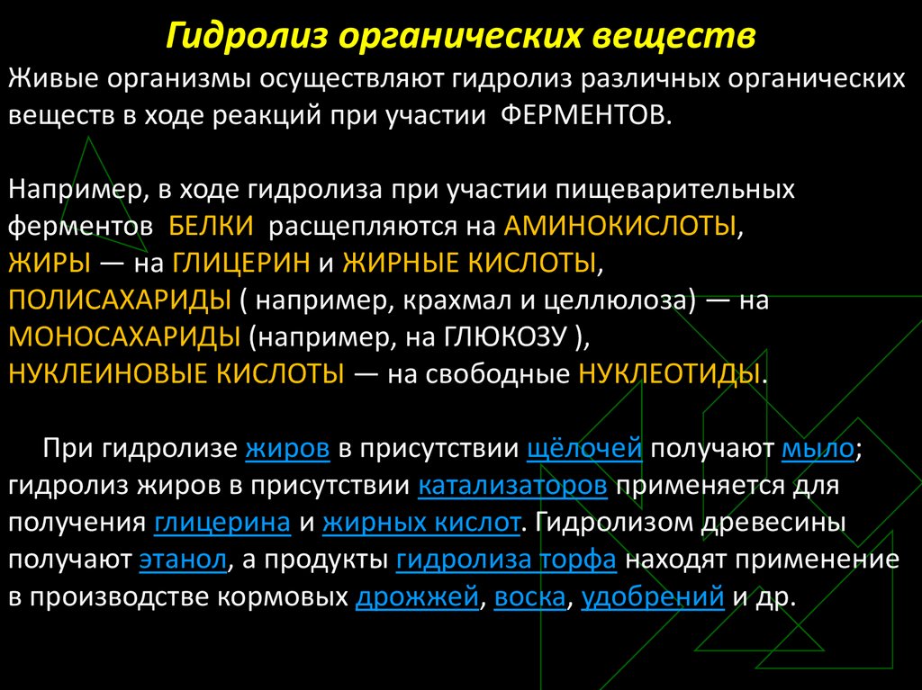Гидролиз органических веществЖивые организмы осуществляют гидролиз различных органических