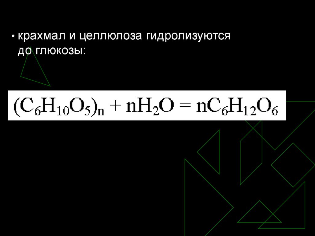 • крахмал и целлюлоза гидролизуютсядо глюкозы: