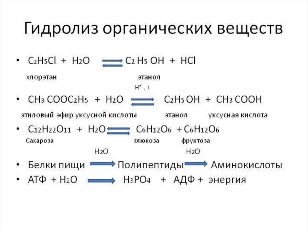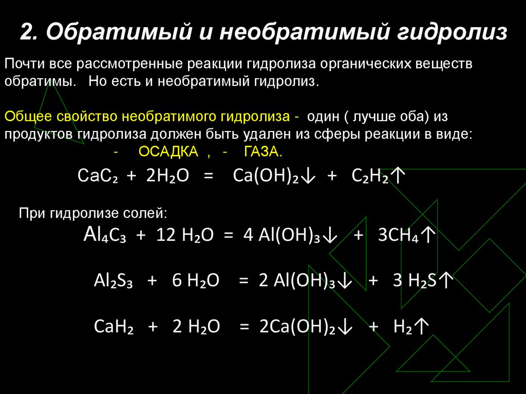 2. Обратимый и необратимый гидролизПочти все рассмотренные реакции гидролиза органических веществ