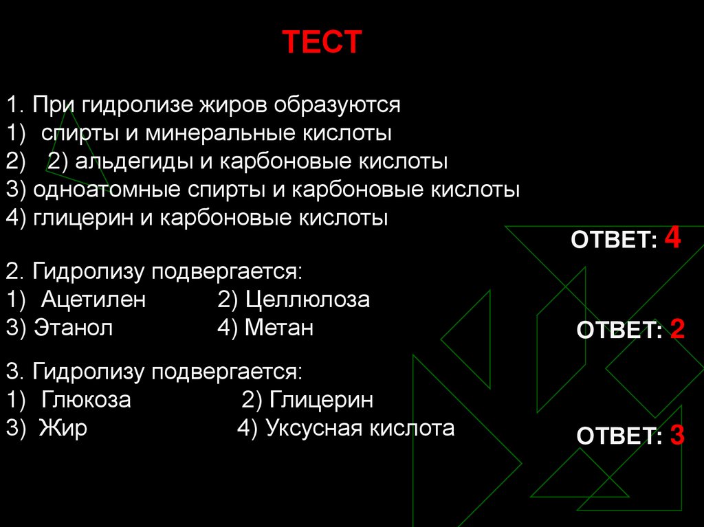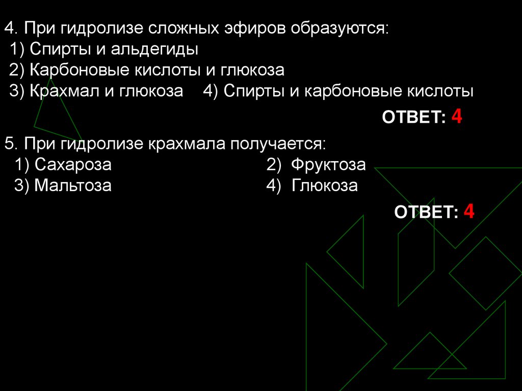 4. При гидролизе сложных эфиров образуются:1) Спирты и альдегиды