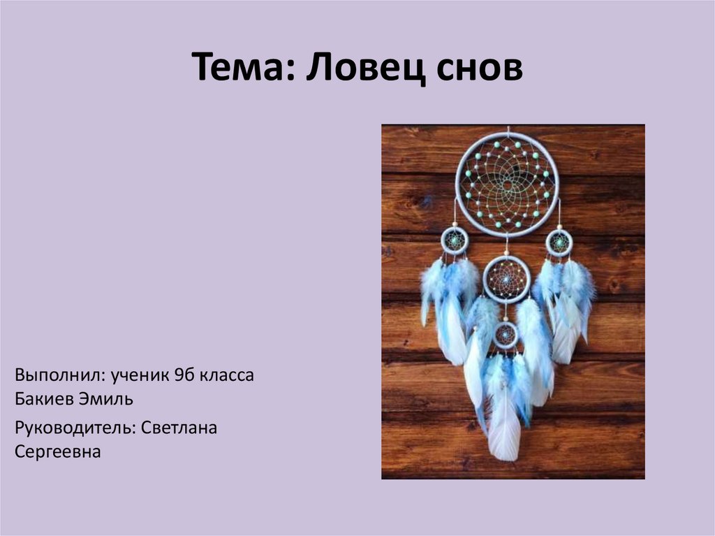 Тема: Ловец сновВыполнил: ученик 9б класса