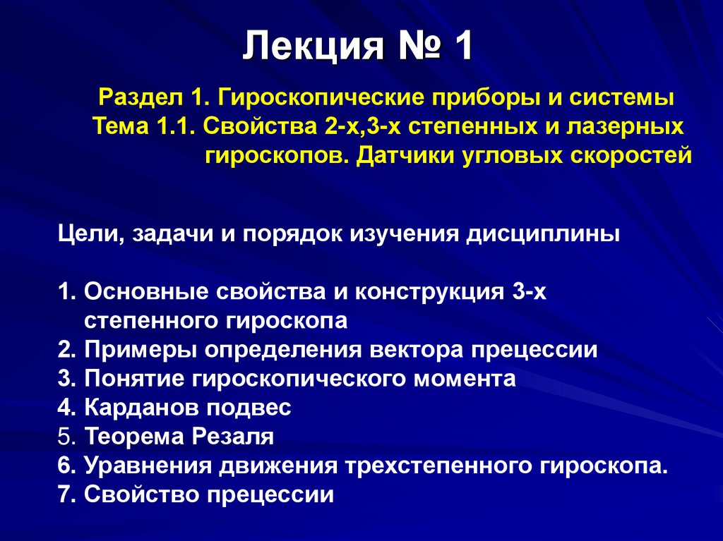 Лекция № 1Раздел 1. Гироскопические приборы и системы