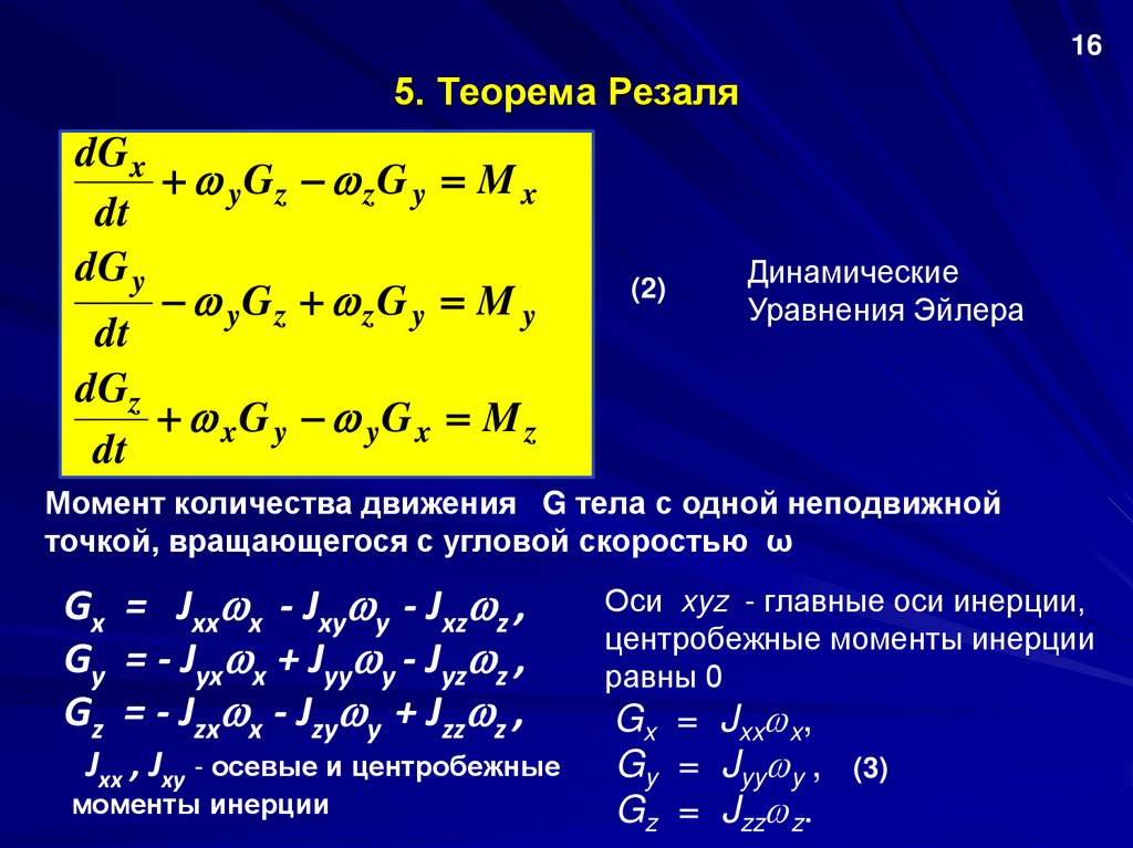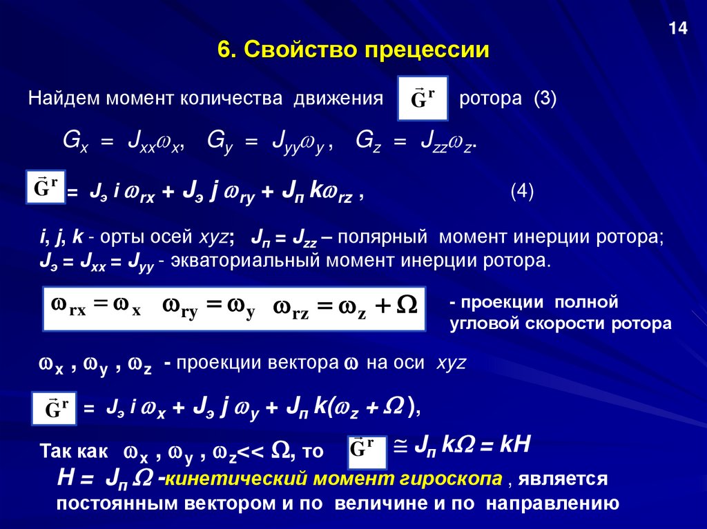 Подставляя (5) в (3), получаем проекции момента количества