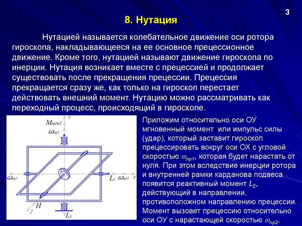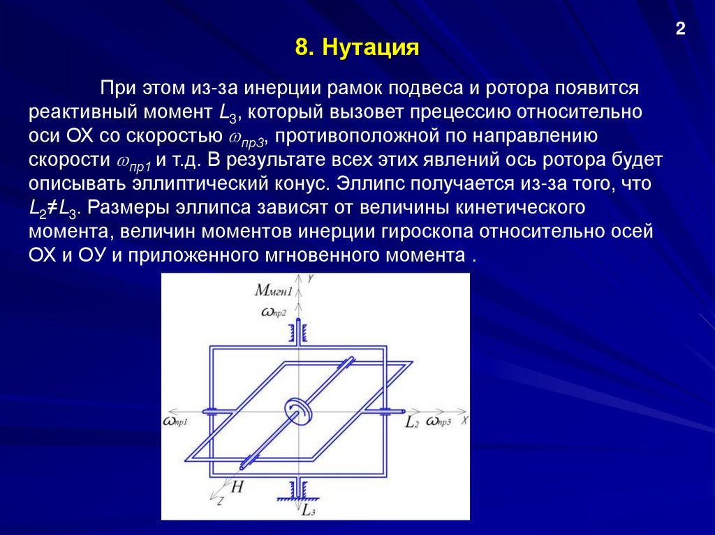 8. НутацияПри этом из-за инерции рамок подвеса и ротора появится