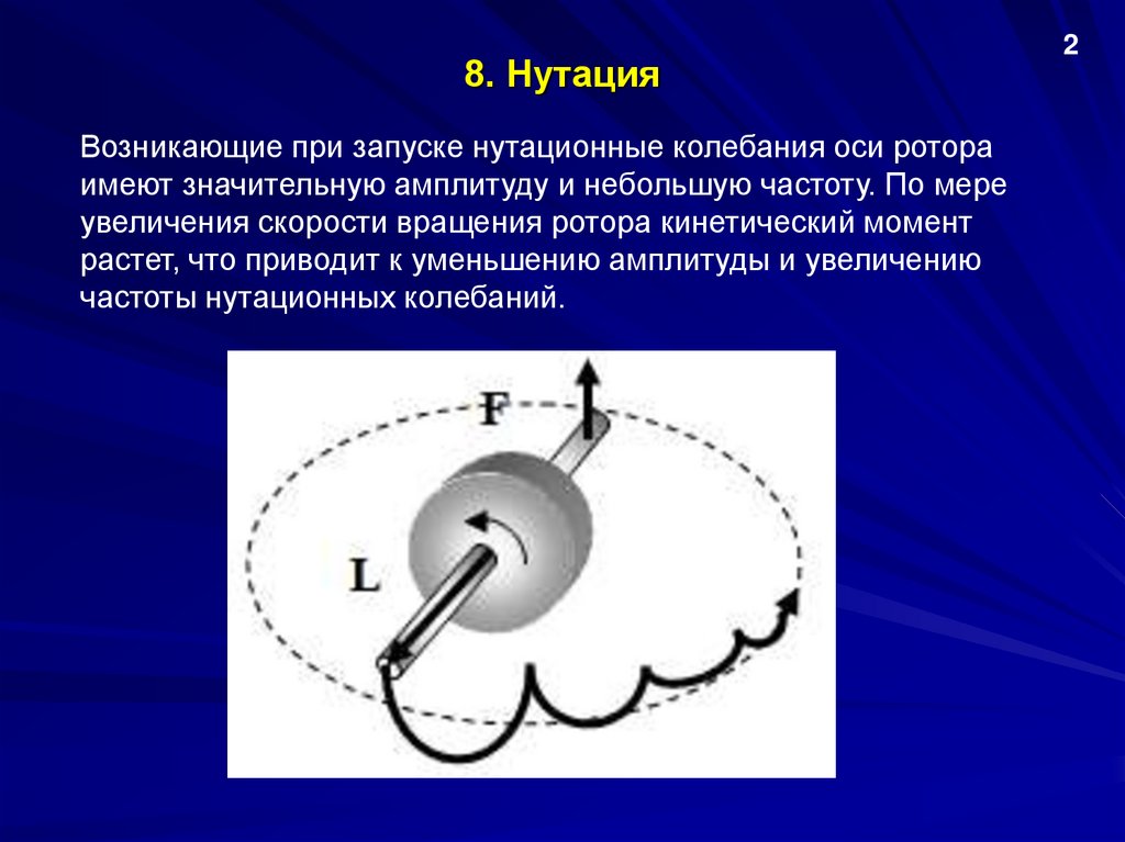 8. НутацияВозникающие при запуске нутационные колебания оси ротора