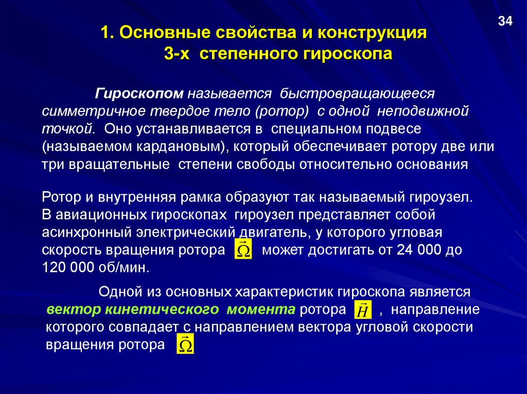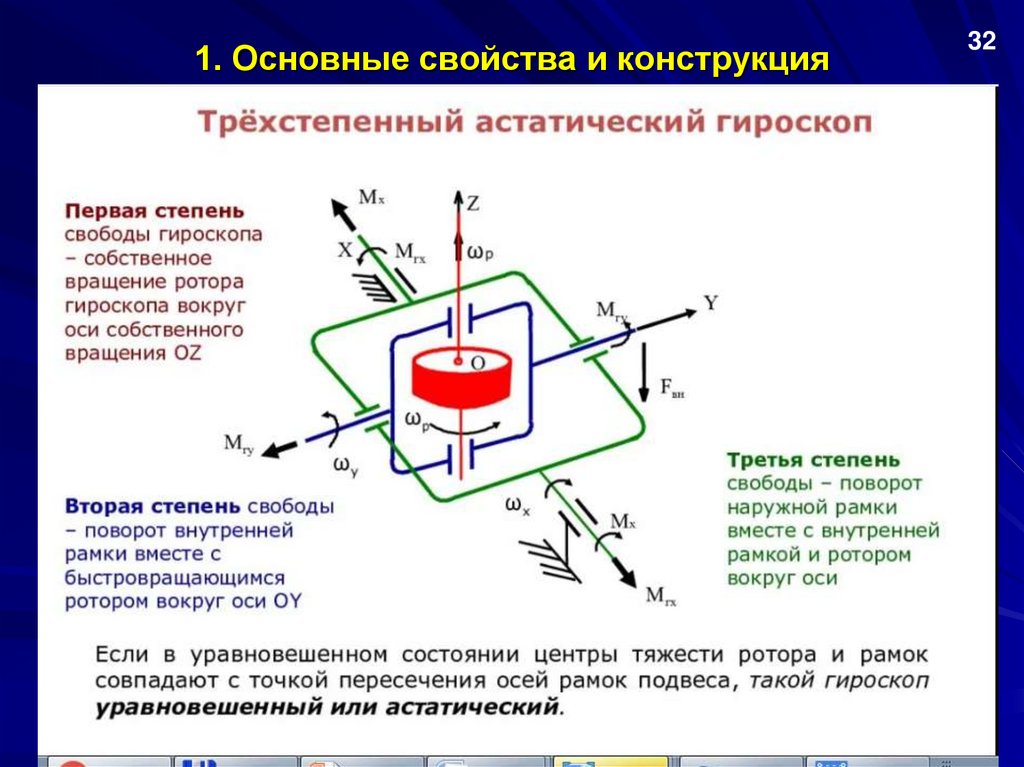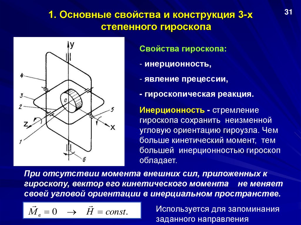 1. Основные свойства и конструкция3-х степенного гироскопа
