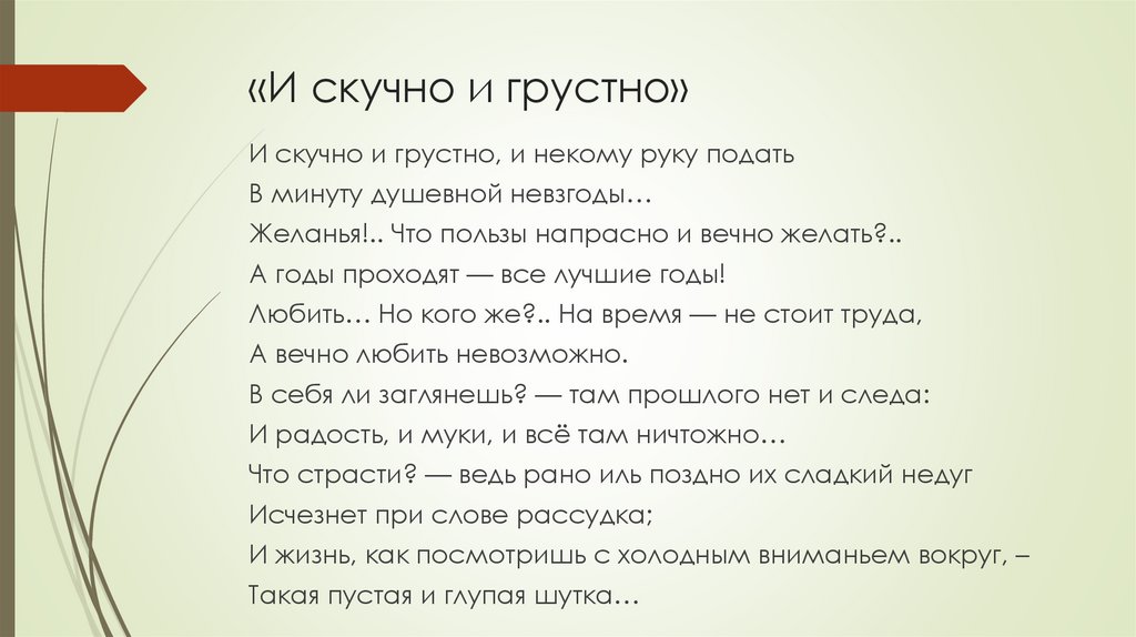 «И скучно и грустно»И скучно и грустно, и некому руку подать