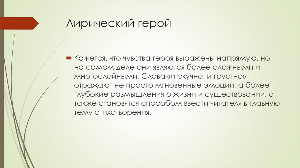 Лирический геройКажется, что чувства героя выражены напрямую, но