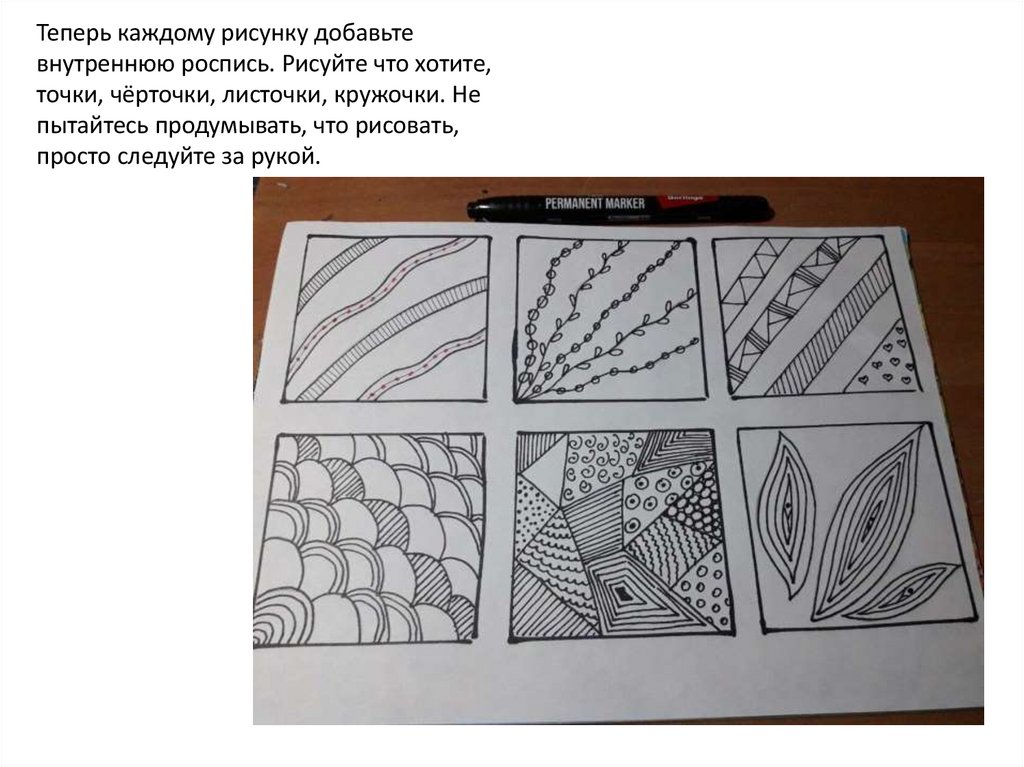 Теперь каждому рисунку добавьтевнутреннюю роспись. Рисуйте что хотите,