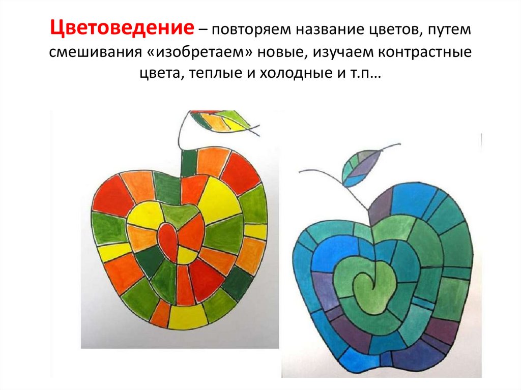 Цветоведение – повторяем название цветов, путемсмешивания «изобретаем» новые, изучаем контрастные