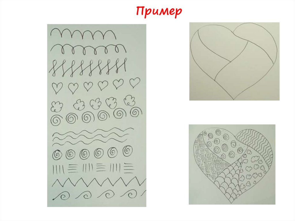 кружочки, точки, завитки, палочки, цветочки и т.д.).