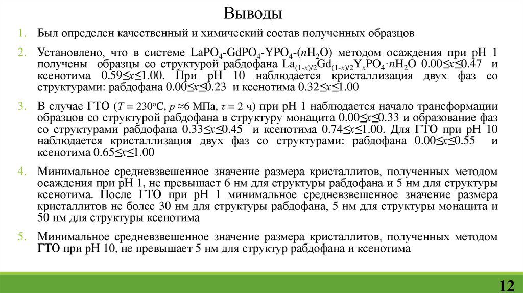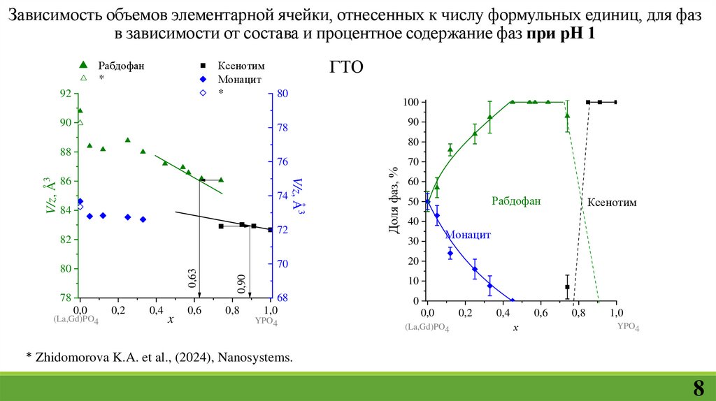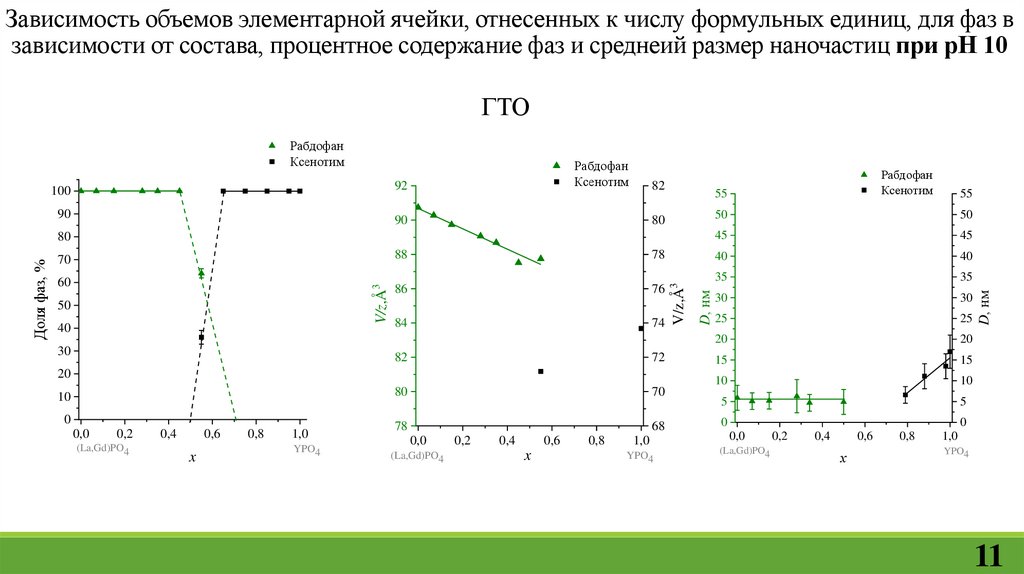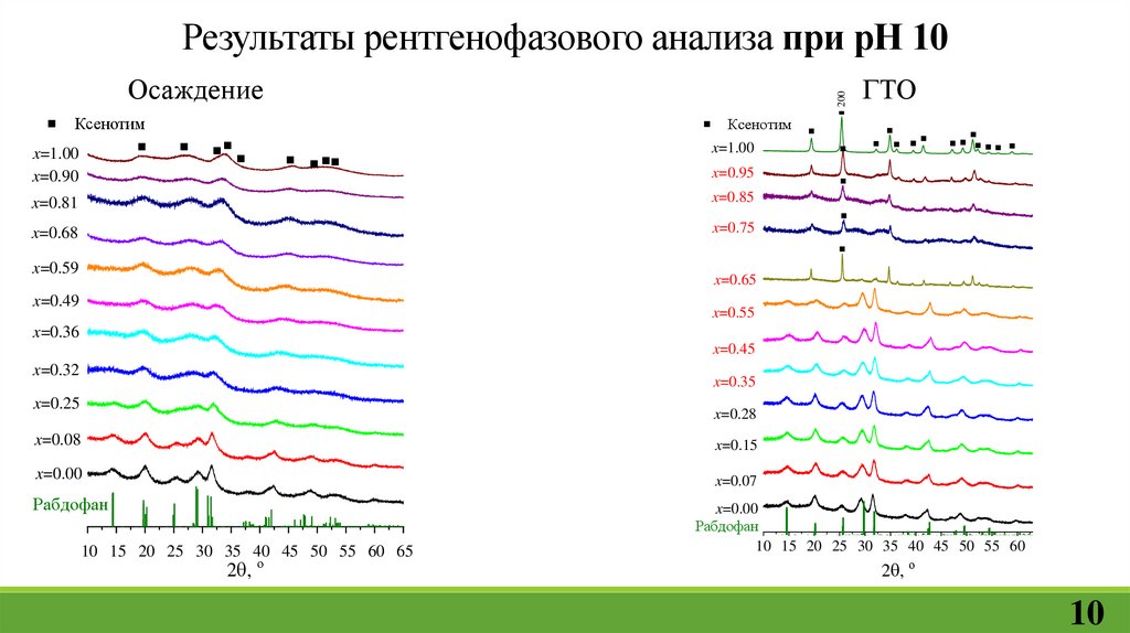 со структурами рабдофана 0.33≤x≤0.45 и ксенотима 0.74≤x≤1.00. Для ГТО при рН 10