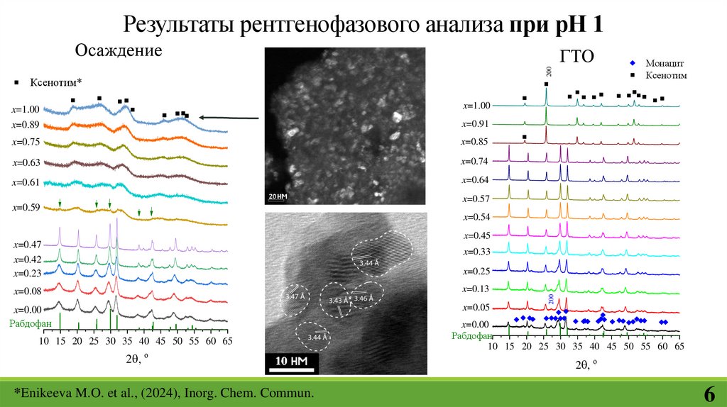 ксенотима 0.59≤x≤1.00. При рН 10 наблюдается кристаллизация двух фаз со