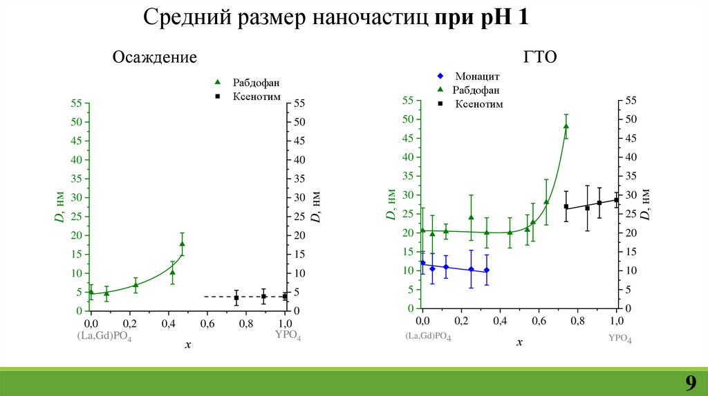 ГТО при рН 10, не превышает 5 нм для структур рабдофана и ксенотима