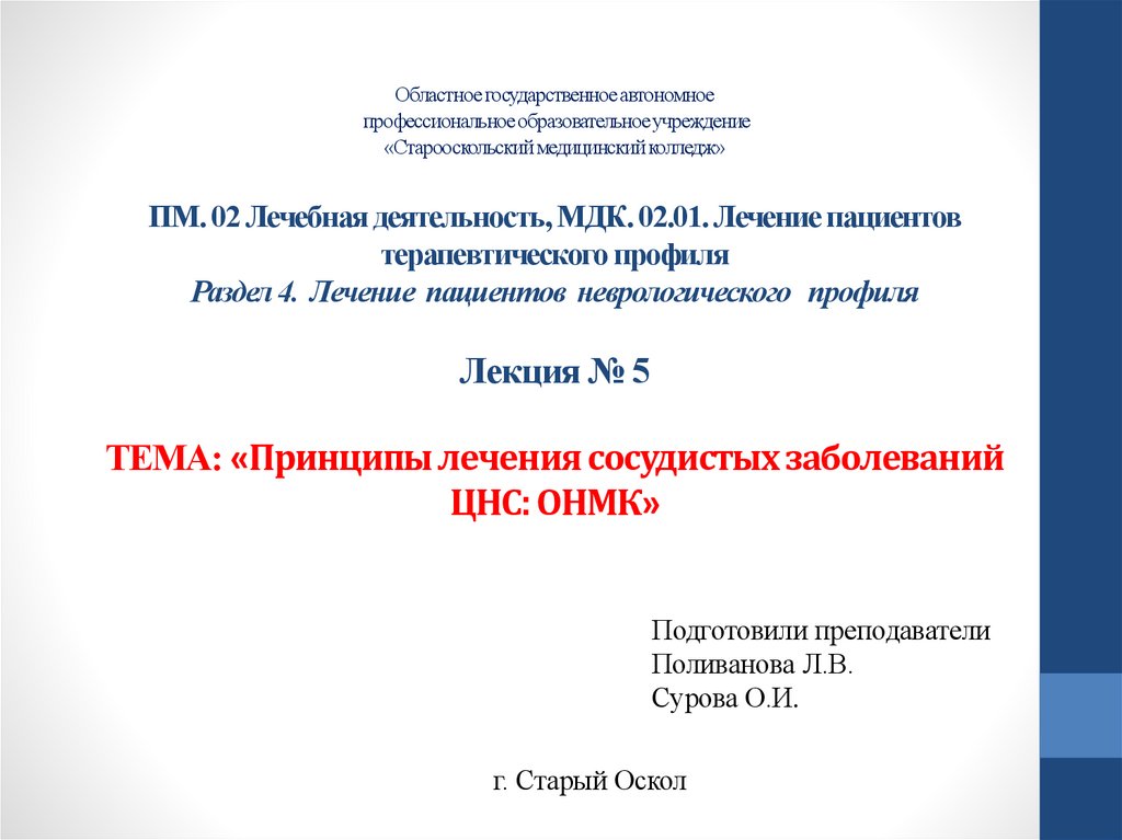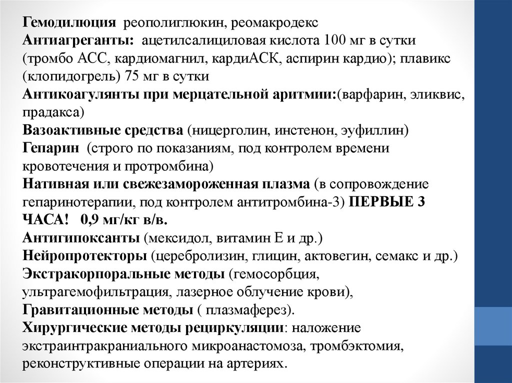 Принципы лечения сосудистых заболеваний ЦНС: ОНМК
