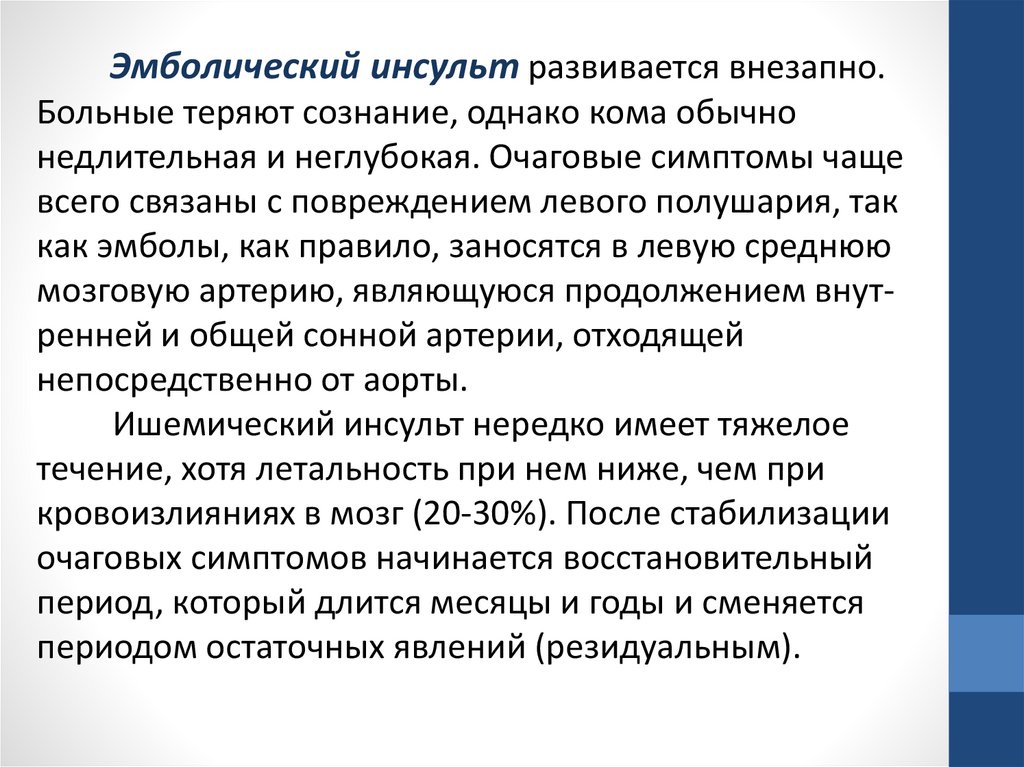 • Летальность при ОНМК в остром периоде – 23% (при