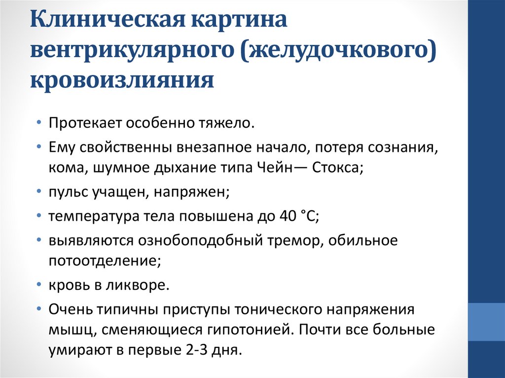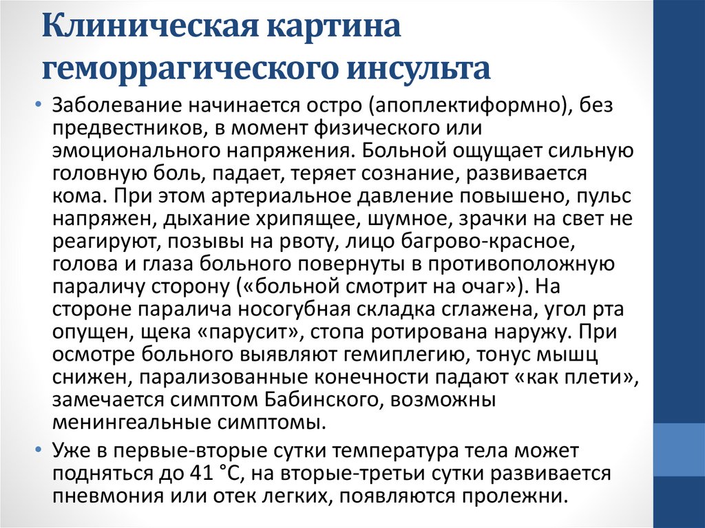 геморрагическом инсульте 50% в первые 2 суток)