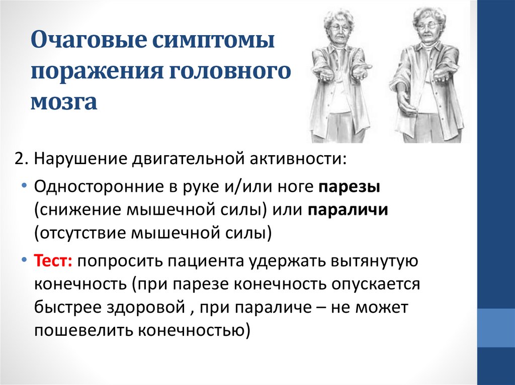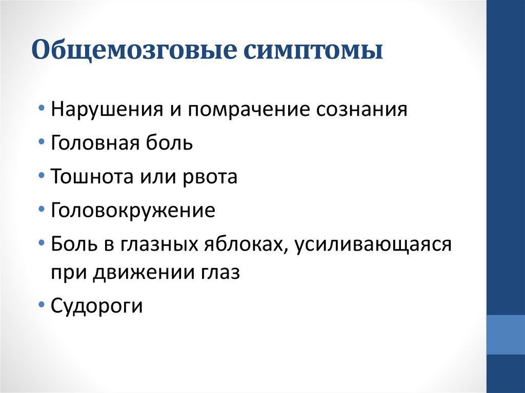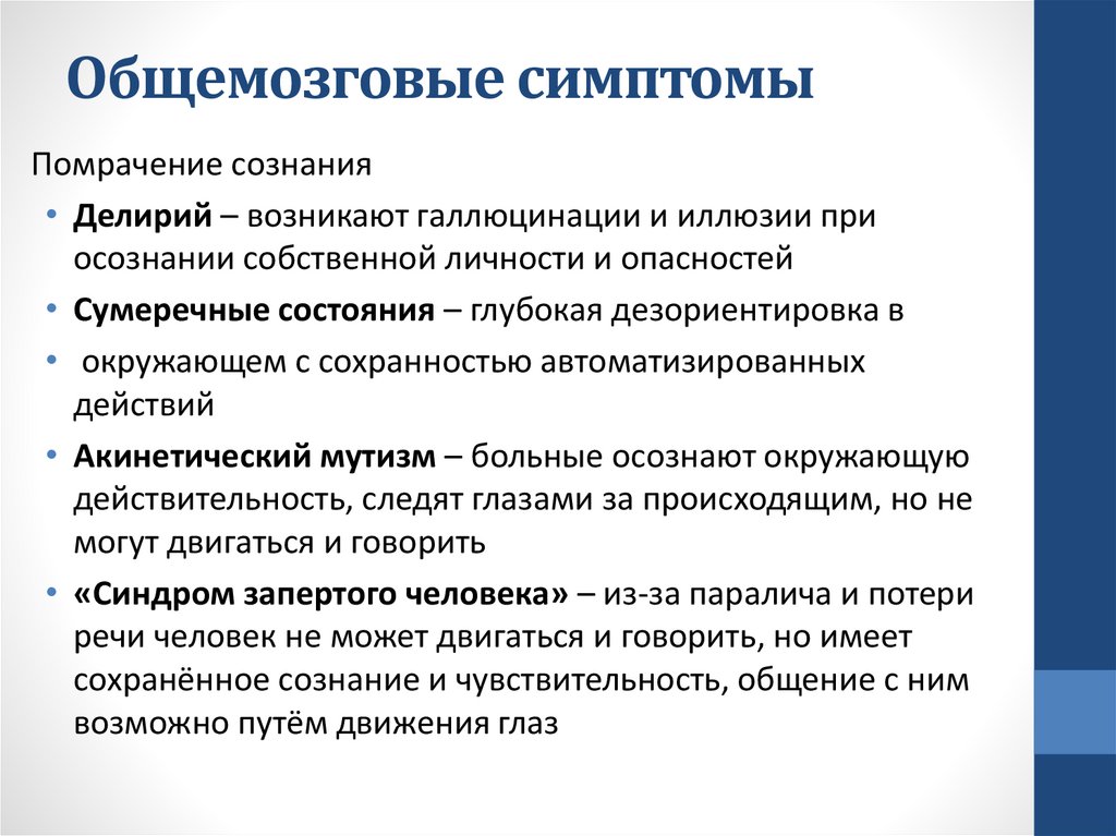 неврологических симптомов, а также стойкий