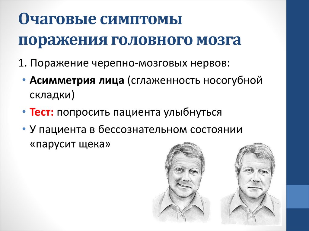 выраженная асимметрия оскала. Больная не может наморщить