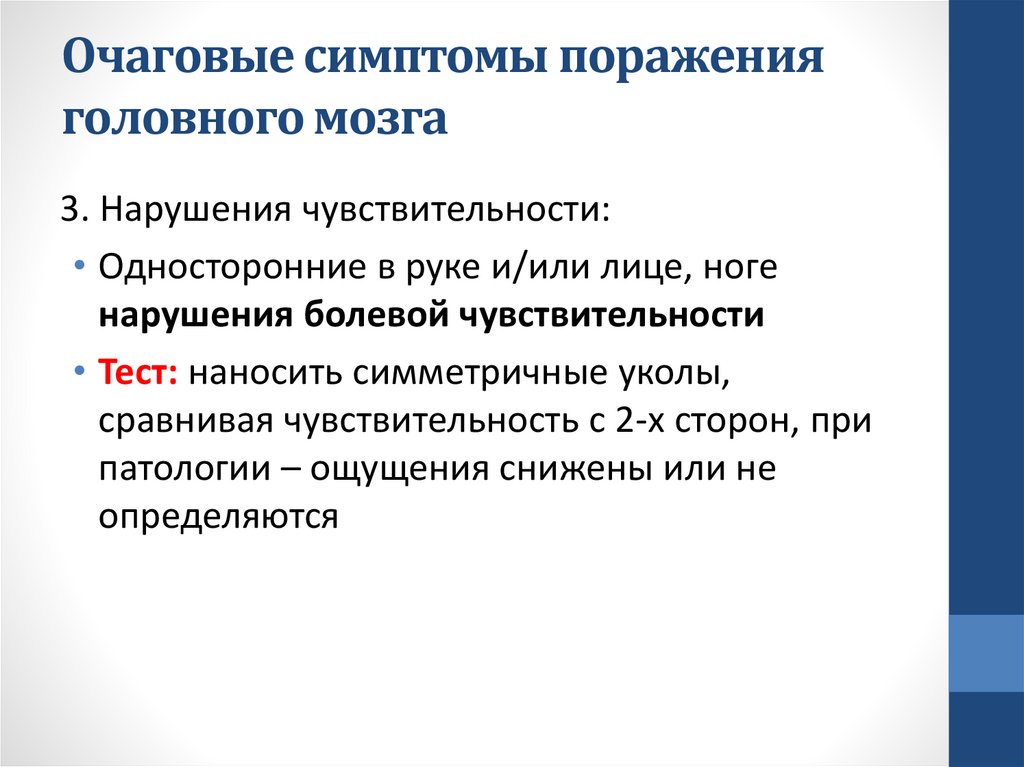 вкусовой чувствительности слева. Симптомов пирамидной