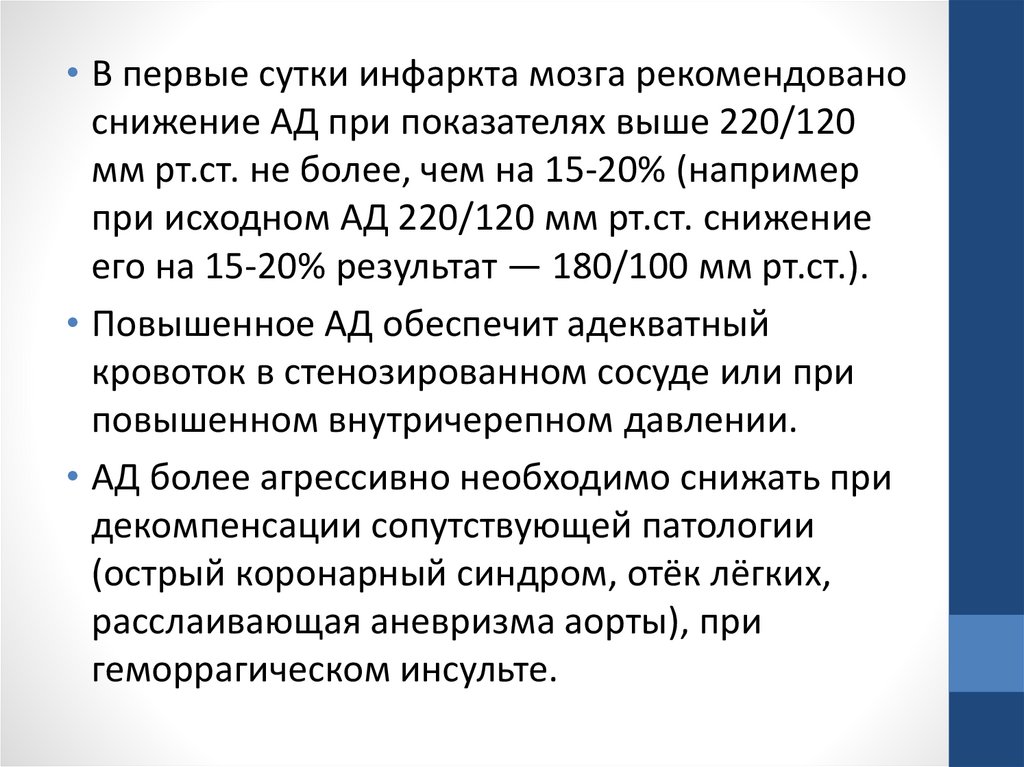 • 2.Принципы лечения больных с острыми нарушениями мозгового